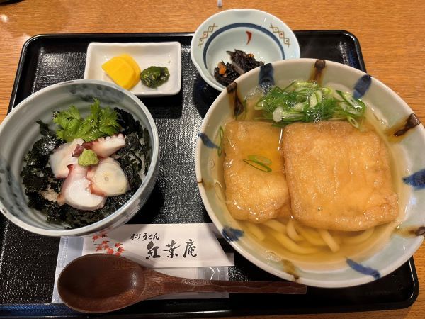 【吹田】ジューシーなお揚げさんが名物! 江坂の住宅街の有名店「手打ちうどん 紅葉庵」