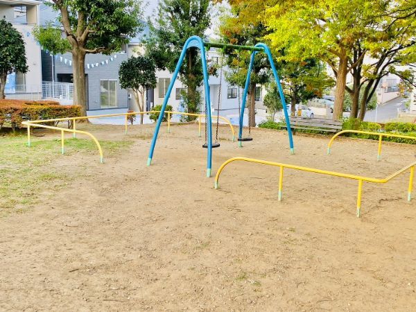 こちらの公園の目玉は間違いなく広大な芝すべりだとは思いますが、まだ月齢の小さいお子様や、芝すべりはちょっと…という方ももちろん楽しめる公園ですので、ご安心ください。 というのも、こちらの公園は芝すべりエリアと一般的な公園遊具エリアがちょうど半分ずつ設置されています。
