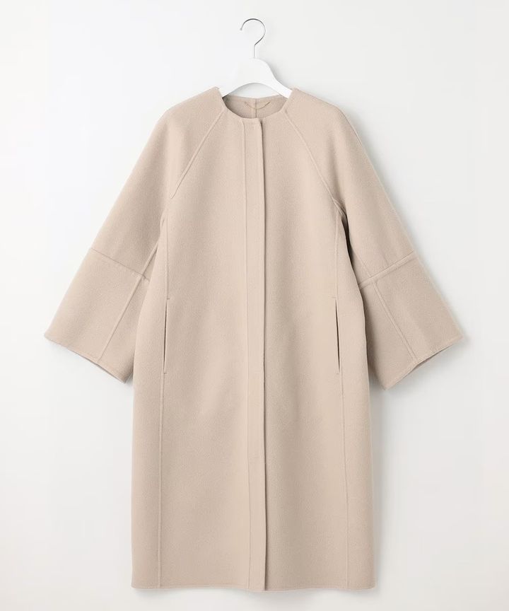 普段コーデがシンプル、コンサバ、ベーシックカジュアルタイプの方は、使い勝手の良いノーカラーのリバーコートがおすすめ。