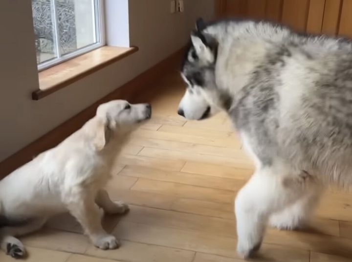 3. 子犬と本気で追いかけっこするデカワンコ。 どっちも無邪気で可愛らしい♡