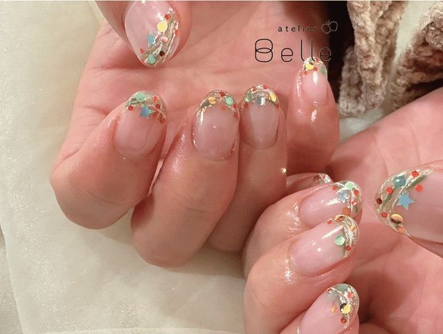 【40~50代大人ネイルデザイン】ランダムに散りばめた上品クリスマスアートで指先から華やかに!