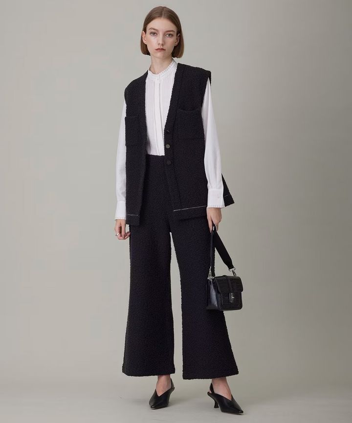 (ブークレツイード ニットジレ/ICB 税込価格35,970円・ブークレツイード ニットパンツ/ICB 税込価格31,900円)
