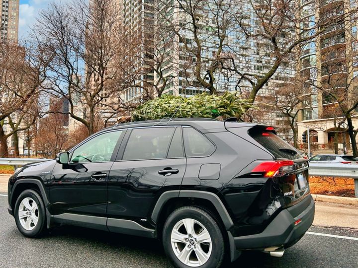 購入したツリーは、車の屋根に乗せてロープで固定し持ち帰ります。ホリデーシーズンになると、このような車が走っている光景をよく見かけます。初めて見たときは「なんて大胆な持ち帰り方なんだろう!」と驚きました。