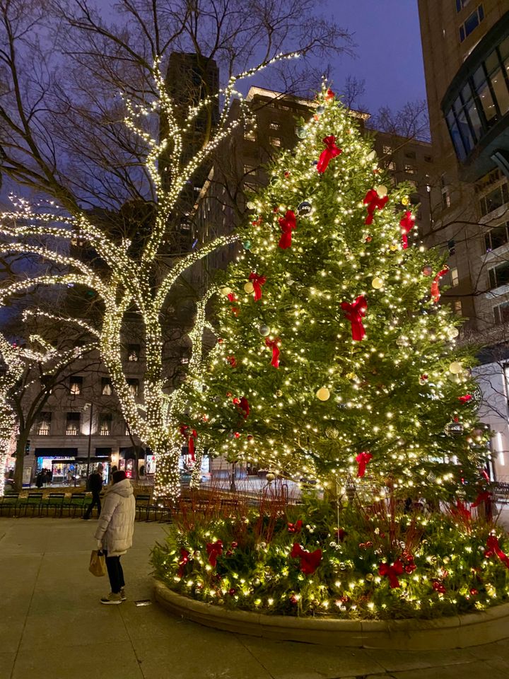 そんななか、街の至るところにはクリスマスツリーが設置され、日没以降はイルミネーションが灯され、心ときめくクリスマスムード一色に。普段から「Have a good day(いい1日を)!」や「Enjoy the rest of your day(残りの1日を楽しんでください)!」など、別れ際に嬉しい一言をつけるのがアメリカの素敵な習慣ですが、この時期になるとお店の店員さんとのやりとりや、エレベーターなどで居合わせた人とのちょっとした会話の最後にも「Happy Holidays!」や「Enjoy your holidays!」と、この季節ならではの言葉をかけあうようになり、それだけで気分はワクワク。ちなみにアメリカにはさまざまな宗教のかたがいるので、「Merry Christmas」ではなく「Happy Holidays」と言うのがクリスマスあいさつの定番となっています。