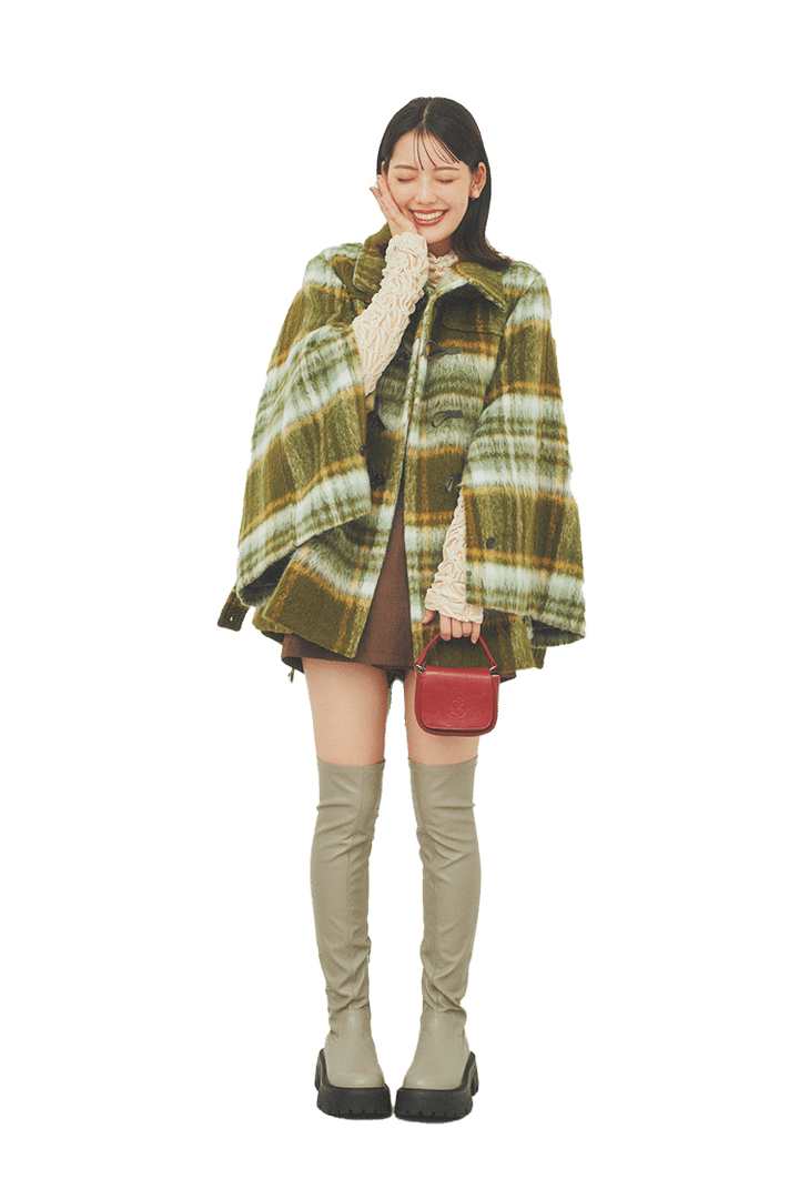 3. 【中村里帆】チェック柄で好感度バツグン!「ダッフルコート」の着回し4選