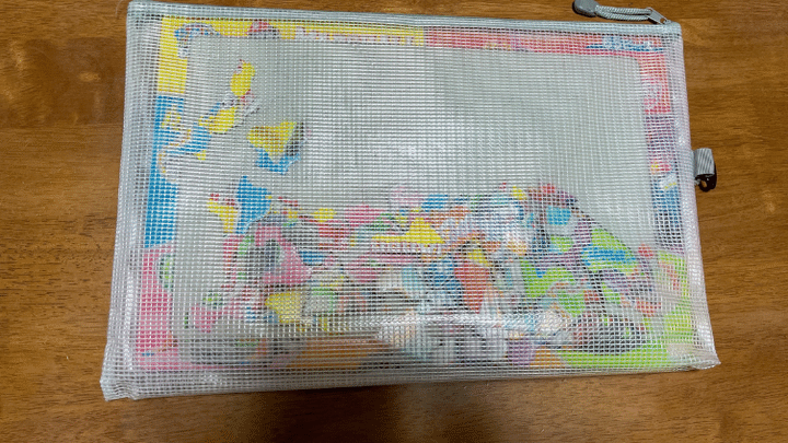 一般的なジッパー付きの袋は入り口がせまく大人でもしまいにくかったのですが、こちらの商品は口が大きく開くのでおすすめ! 子どもでも簡単に入れられるので、取り出しやすく、しまいやすいです。色もグレーなので、派手な色が多い子どものパズルも部屋になじみやすくなりますよ。