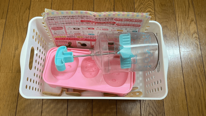 年齢にもよりますが、自分で使ったら、自分で片づけてくれるのが理想です。お子さんの身長を考慮して、専用の場所を用意してみましょう。筆者の家では、おもちゃと説明書をまとめて専用のケースに入れていますよ。