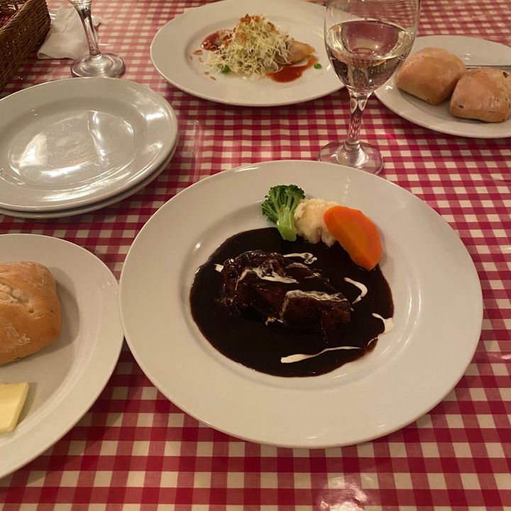 そしてメインで頂いたのは牛ほほ肉の赤ワイン煮と白身魚とホタテのお料理です🍴