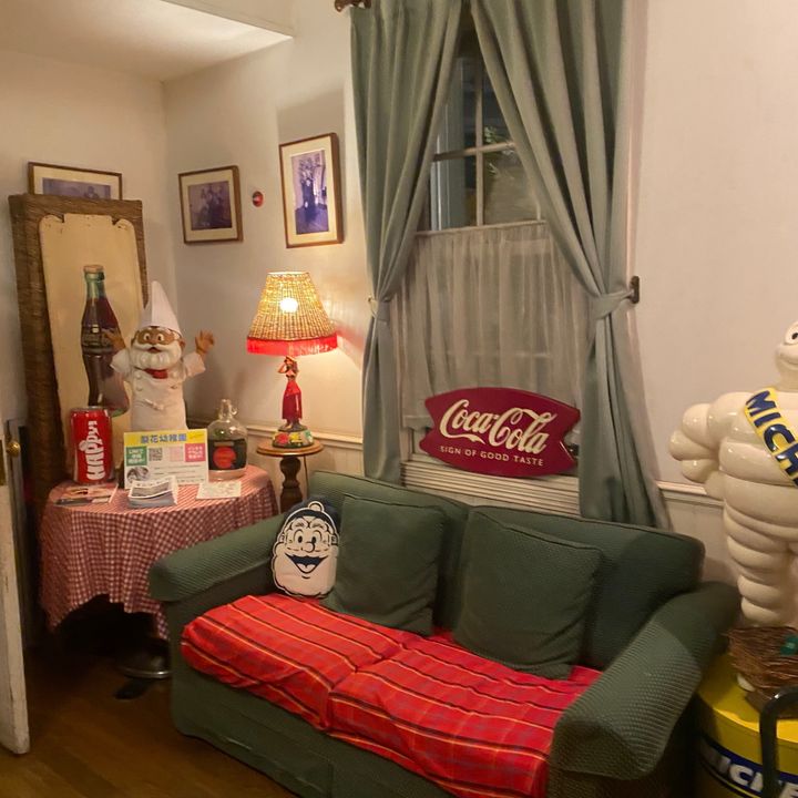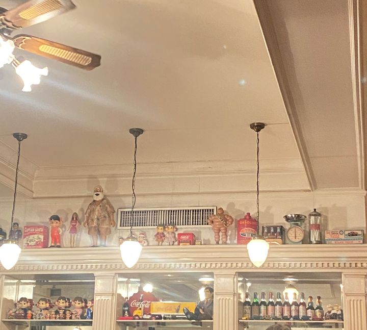 ドアを開けるとそこにはクリスマス一色の店内が待っています!たくさんのキャラクターグッズが昔のアメリカを思わせます😌