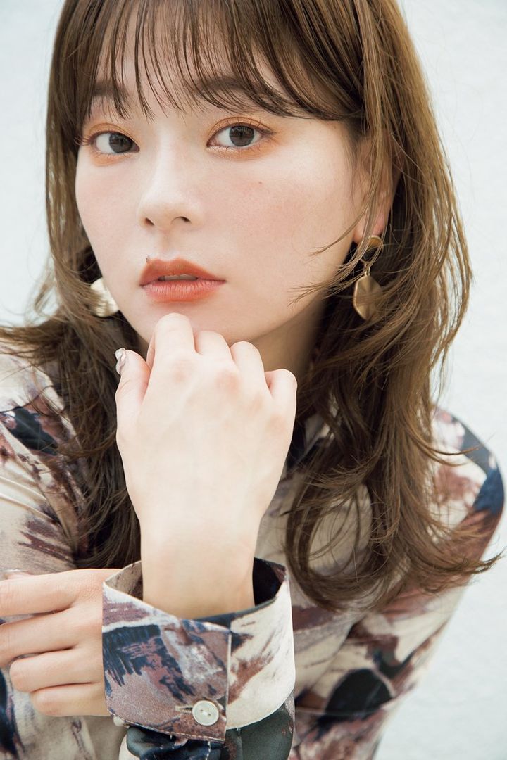 フロントサイドに丸みのあるマッシュレイヤーを加えたら、いつものヘアがたちまち洒落ロングに大変身! あえて前髪とレイヤーをつなげないようにすることで、奥行き感や立体感をプラスするのもポイント。毛先を内外ミックスに巻けば、肩の力の抜けた自然体なハネ感ヘアに。