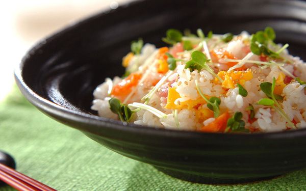 お刺身をふんだんに使ったお寿司は、ハレの日にぴったり。お刺身は白身魚や貝類など、数種類を組み合わせるとより贅沢に。お刺身の盛り合わせを使うと簡単ですよ。お刺身に火が通らないよう、寿司飯はしっかり冷ましてから混ぜてくださいね。イクラをトッピングしても良いでしょう。