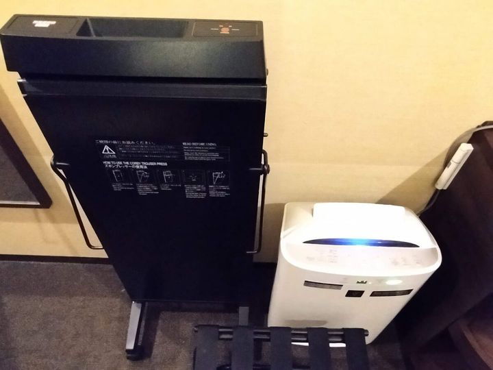 さらに客室内にズボンプレッサーも完備。もちろん、加湿機能付き空気清浄機なども備えられ、エアコンが個別空調できるところも高ポイント。