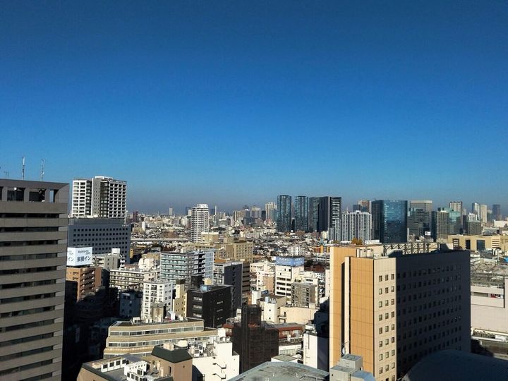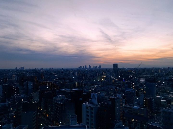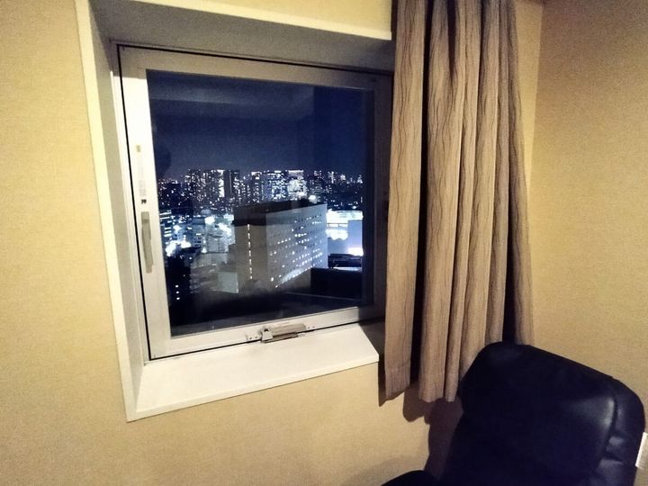 ココは、地上約73m、最上階20階の客室。これはスゴい! ビジホとは思えない素晴らしい眺め。大崎や新宿方面の高層ビル群に彩られたまばゆい都心夜景が広がります。