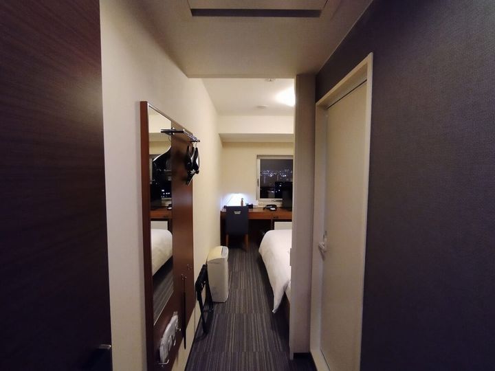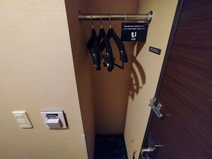 1泊の滞在なら壁面ハンガーラックでも問題ありませんが、このくぼみ型クローゼットがあると数日滞在するときや洋服が多い人にはとっても便利。