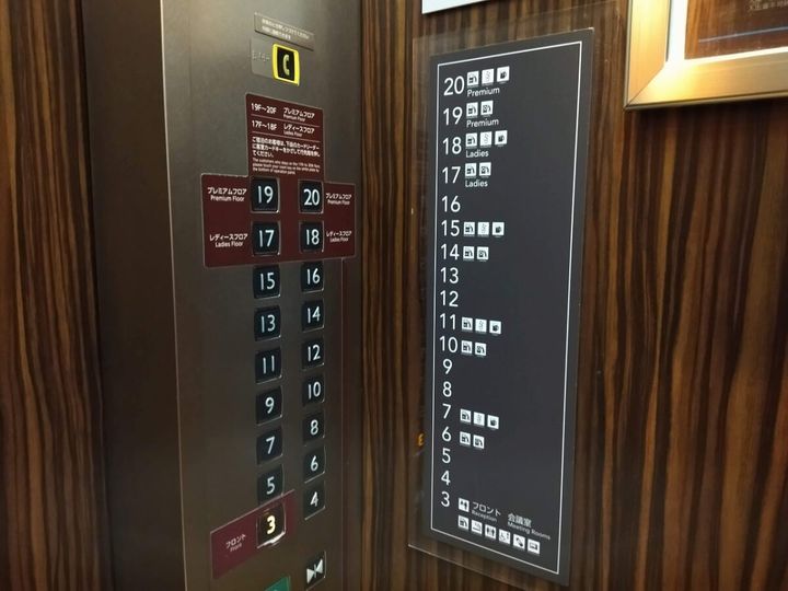 宿泊したのは、最上階・20階の「プレミアムデラックスシングル」。17~18階はレディスフロア、19~20階はプレミアムフロアになっていて、フロア宿泊者しか行けないカードキーシステムを採用。