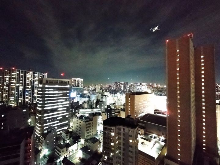 ユーフォー! じゃなくて、ヒコーキ!! 羽田空港への空路にあたるようで、ド迫力の飛行機夜景を楽しめるのです。こんな眺望を楽しめるホテルなんて滅多にありませんよ。時間帯にもよりますが高層ビル群の上に次々に現れる姿は、あたかもUFOみたい。キラキラ輝く都心夜景と相なり神秘的な光景を楽しむことができます。