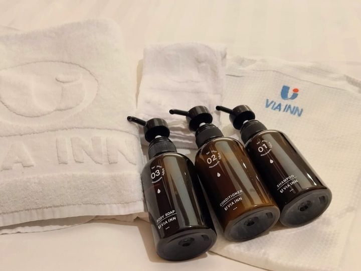 バスルームは3点ユニットタイプですが、ヴィアインオリジナルのバスアメニティがあることに驚き! リラックスしたひととき、癒しのひとときを過ごしてもらいたいとプロジェクトチームを立ち上げ、創業1924年の「澁谷油脂」とともに共同開発し、2022年から導入開始。