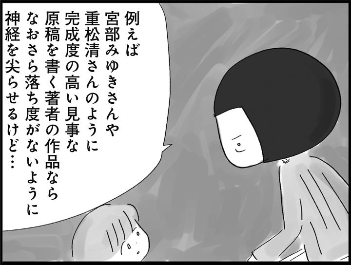 「宮部みゆきさんや重松清さんのように 完成度の高い見事な原稿を書く著者の作品ならなおさら......」(第8話)
