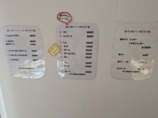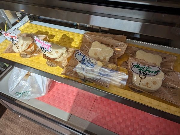 サンドイッチの具材は惣菜系をメインにスイーツ系もありましたよ。 残念ながらすでに売り切れになっているサンドイッチもあってショーケースの中のサンドイッチは残り僅か。 エビカツや生クリームが人気だそうですよ★ 運がよければ違う表情のレアなくまさんに出会えるかも!?