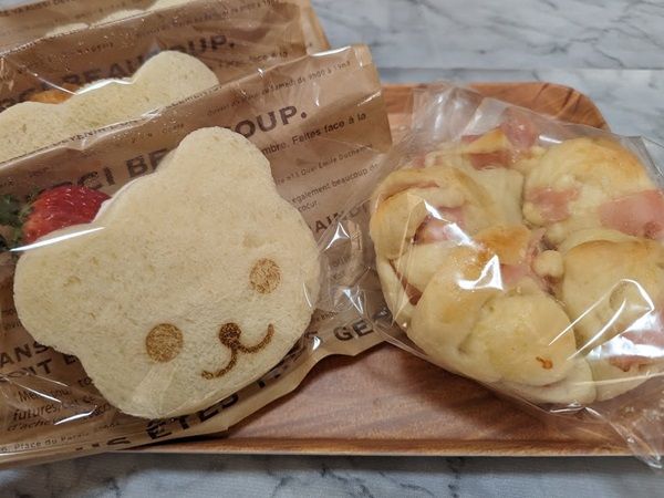 ちぎりパンはハムが人気だそうですよ♪ 予約していたパンにお店で気になったくまサンドイッチもゲットして帰宅。