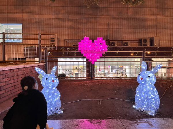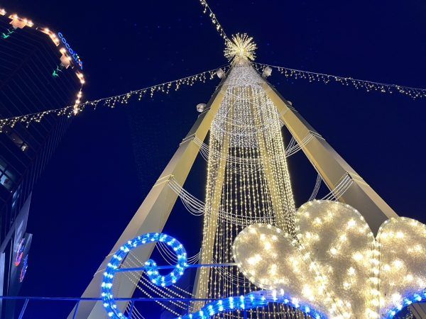 両脇にはタイミングによって色の変わるクリスマスツリーも設置されています。