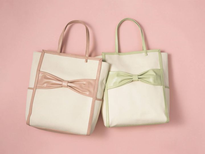 リボン部分はキャリーにつけられて内側はポケット多めなので荷物が大量な地方遠征組にぴったり! 両面にあるストラップホールで自分なりの推しバッグにアレンジ。
