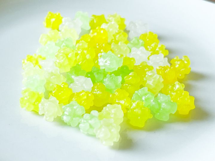 パイナップル・バナナ・レモン・マスカット・グレープフルーツの5つの味の金平糖が入っています。とってもカラフル!