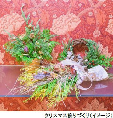 ROKKO森の音ミュージアムでは、期間限定で手軽に体験できるワークショップを開催しています。その一つの「クリスマス飾りづくり」では、フレッシュリーフや木の実などの自然の素材を使って、お部屋に飾れるミニクリスマスツリーやリース、スワッグなどを作れます。