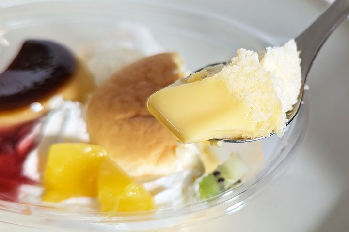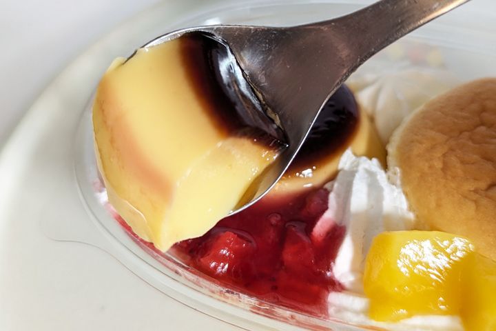 まずはプリンから食べてみました。食感は固めで、どこかレトロで懐かしくなる味わいです。