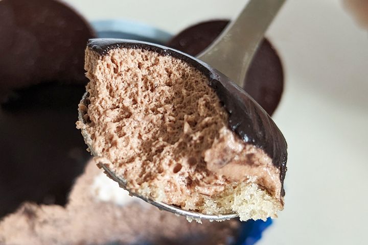 ひと口食べると、予想に反してあま~いチョコクリームでした。フワシュワ~と口のなかで溶けていく瞬間は、まさに口福!