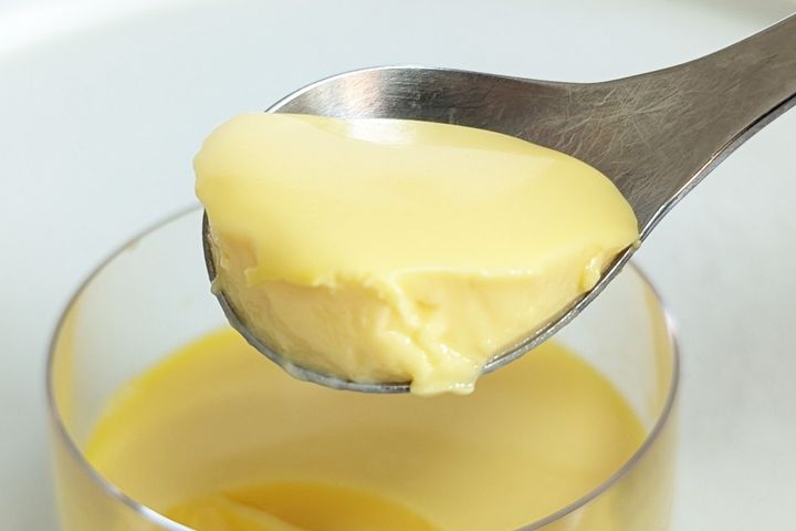 スプーンですくった時の印象は、「あぁ、やわらかめのプリンね」という感じ。口に入れる前は写真のように固形です。が、食べた瞬間、なにかと反応したの? と思うくらい化学変化が起こったかのように一瞬で液体になりました! 初めの3口ほどはこの状態変化に感動し、次第に玉子のコクや甘みがとても上品なことにうっとり。あっという間に食べきってしまうサイズですが、食感、味わいともに価格以上のものでした。