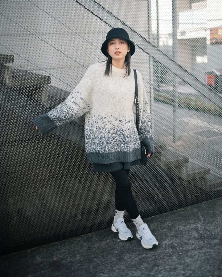 参照元:オーバーサイズニットからミニワンピースをちら見せした今年らしいシルエット