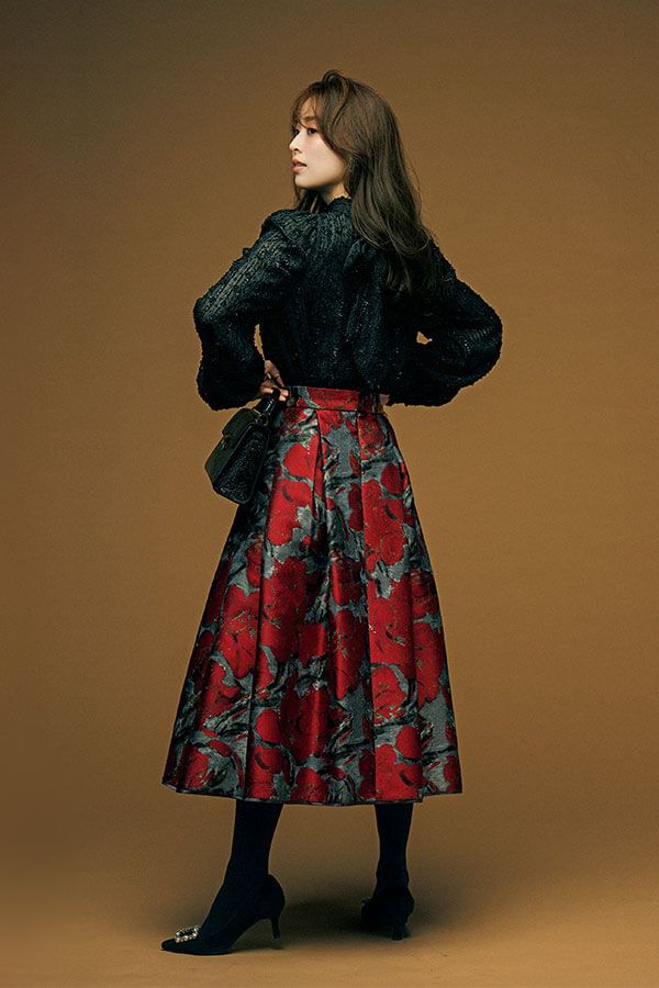 何かを勝負したい日や、色で願掛けをしたいときこそ赤×黒のパワーに頼って。表情豊かなジャカードや大胆なプリントで、ドラマチック感と自分の足で立つタフさを表して。