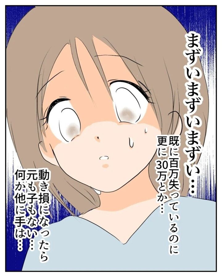 本作では、詐欺被害にあい、100万円を失ってしまったエピソードが描かれています。騙されてしまった自分を激しく責め立て、今後はお金を取り返そうと奔走します。相手がプロの詐欺師だとわかってもなお、お金を取り返すことで頭がいっぱいに。