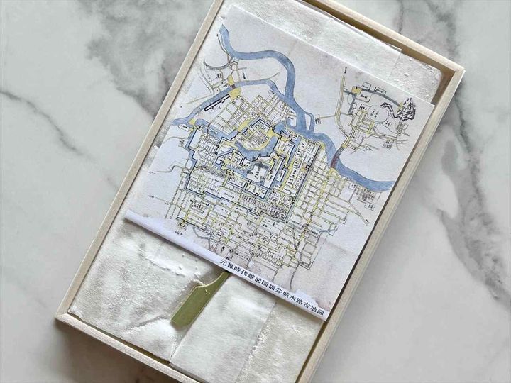 木箱の中には、リーフレットと菓子切りが同封されています。