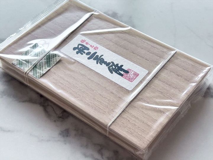 包みを開けると、透明の袋に包まれた木箱があらわれます。