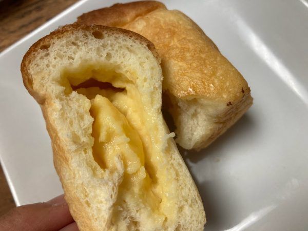 ミニ食パンの形をした”プレミアムクリームパン”。ソフトなパンに手作りのカスタードがとっても美味〜。