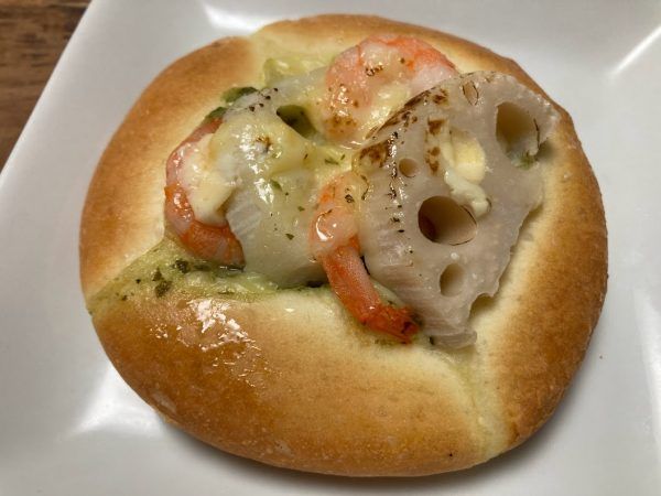 ”えびレンコン”も、他のパン屋さんでは見かけない新鮮な具材。レンコンのシャキシャキ感とエビのプリプリ感がパンと合わさって、とっても美味しいお惣菜パンです。