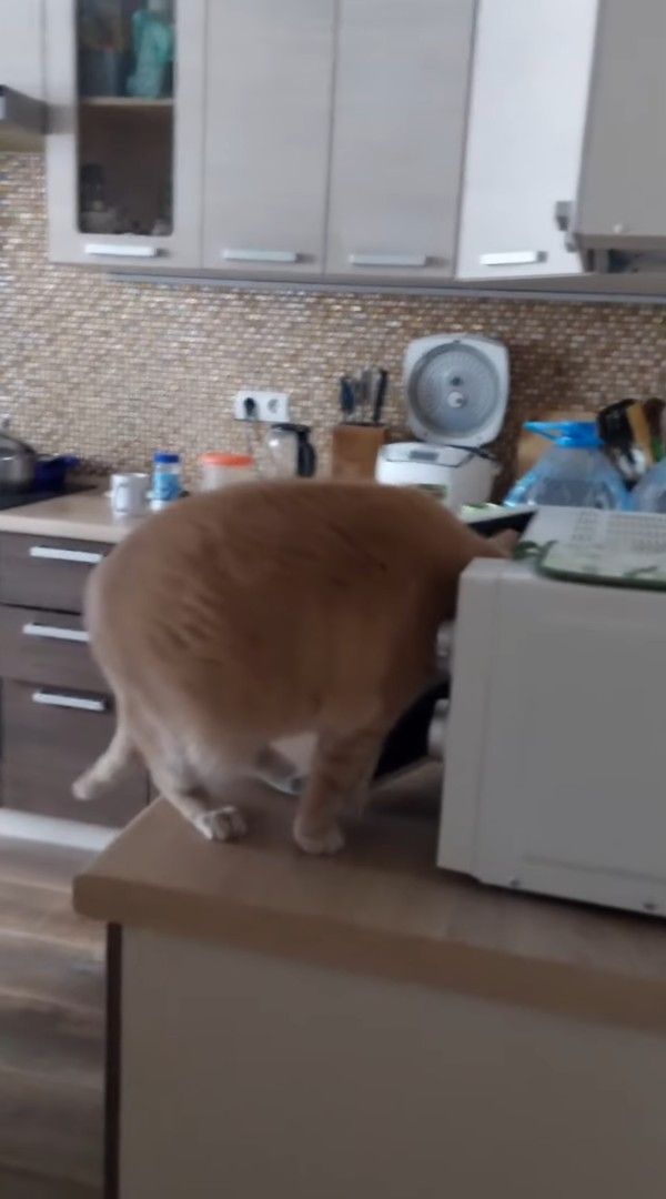 3. その中に入ろうとしちゃダメ!猫が開けて潜り込もうとしたのは・・、電子レンジ!?!?