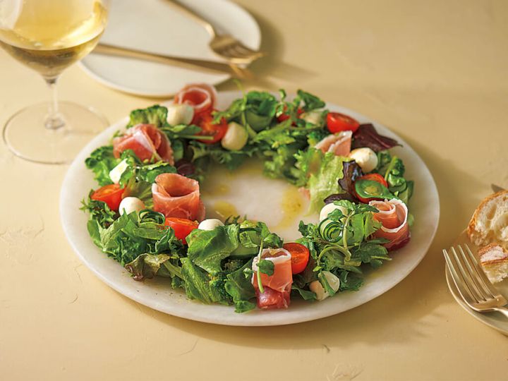 ベーシックな食材を切り方や形状、盛りつけ方でごちそうに。はちみつやハーブを効かせた、レストラン風のドレッシングも◎。