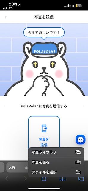 スマホでQRコードを読み込むとライブラリやファイルを選択できます。その場で撮った写真もアップロードできるようです。