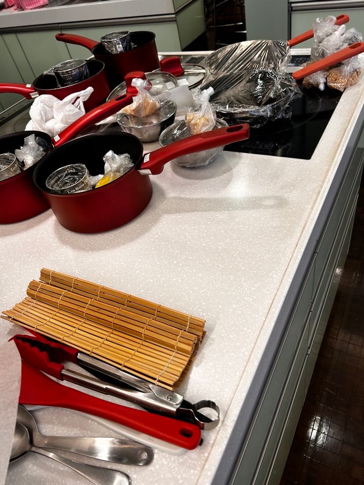 親子クッキングのコースは3時間です。最初に一通り調理の流れを講師の方がモニターに映しながら説明してくださいます。そしていただいたレシピを見ながら作業開始です。分からないところはスタッフさんに適宜質問しながら進めます。材料など用意されてはいますが品数が多いのと子どもが一緒なのでテキパキ動いて時間内に終わるシステムになっています。お友達と一緒に参加しましたが話す時間がないほど工程が多く娘にはワクワクする内容だったようです。使用した器具は各自洗います。