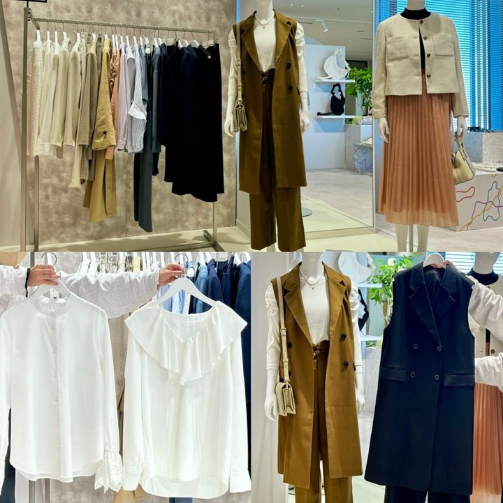 デイリーからきちんとシーンにも使えるツイードジャケットやフリルがあしらわれたブラウスなど、やわらかな素材感やシルエットにこだわったアイテムが豊富にラインナップされています。