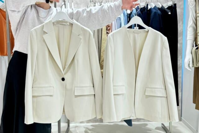 ▲白のウォッシャブルジャケットは卒入園やオフィスシーンにピッタリ