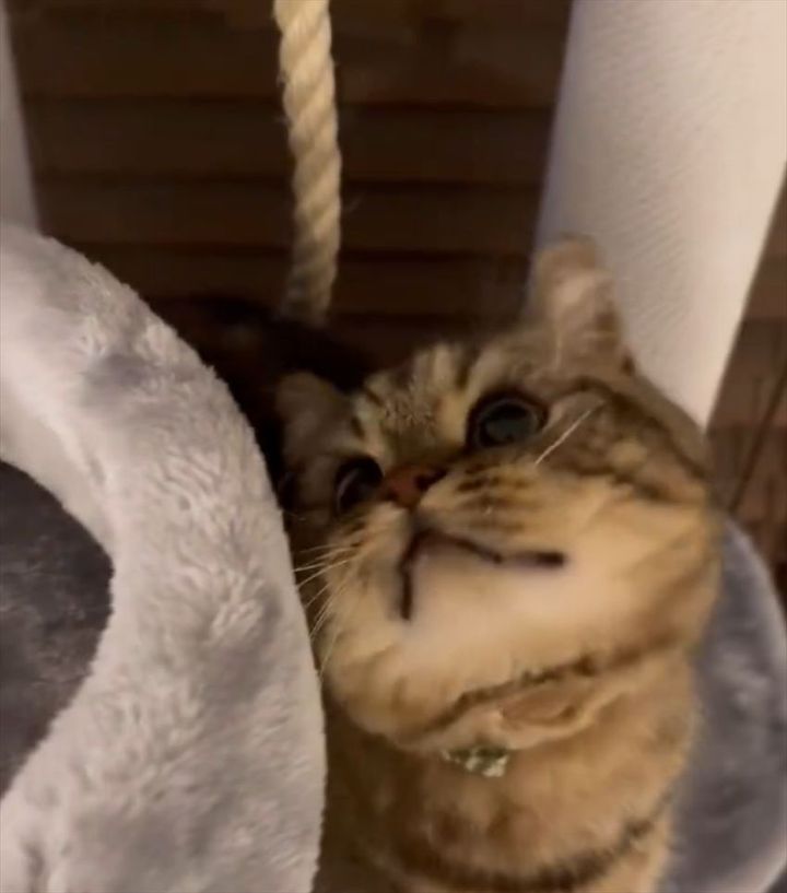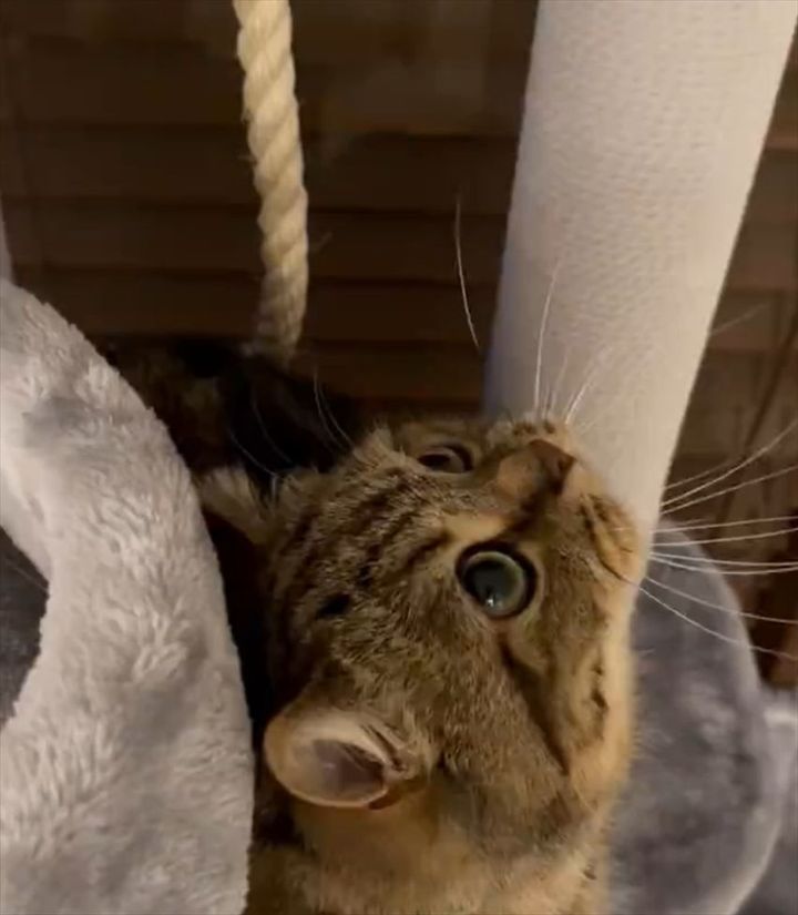遊んでいる猫の顔がかわいすぎる!おめめくりくりなその姿に反響!