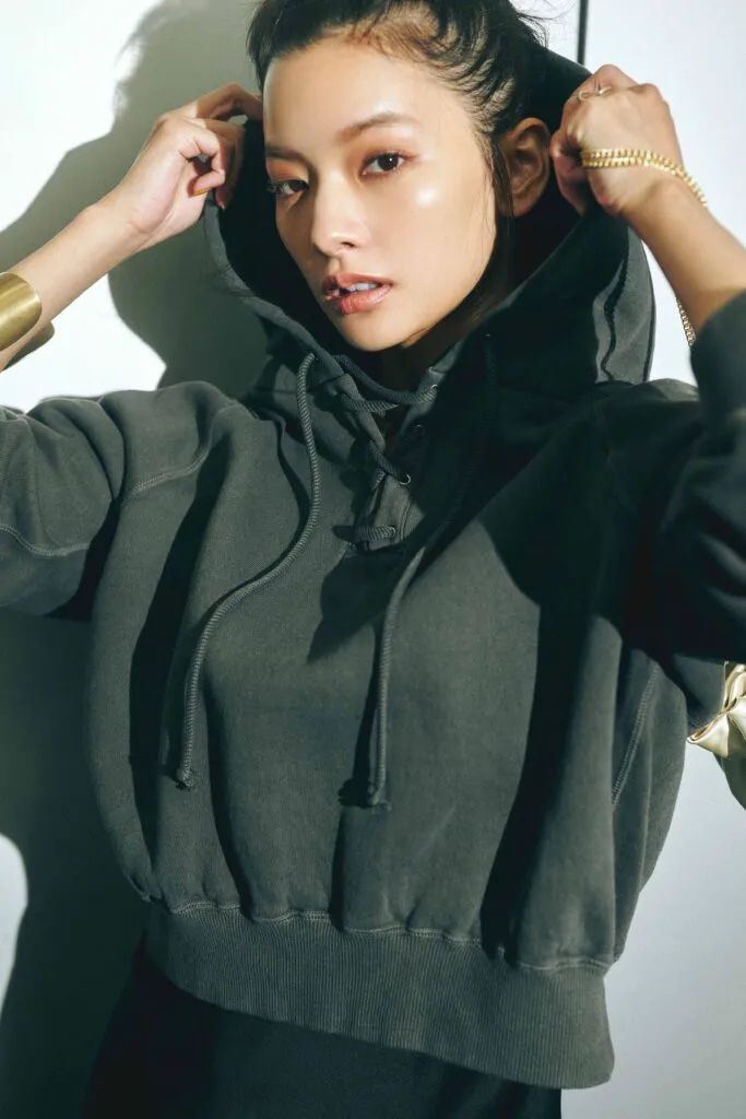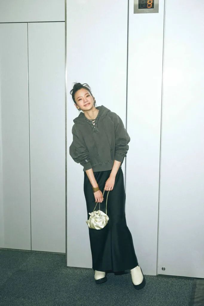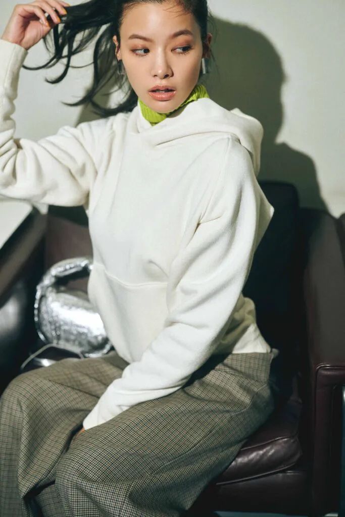 コーデにアップデート感が欲しいときは、デザイン性の高いスウェットの出番。お腹が覗くとカジュアルになりすぎる短丈フーディは、ワンピースやハイウエストのボトムスでうまく繋いで、大人らしく着るのが正解。ワンツーコーデも、シルエットや素材感が今年らしい組み合わせなら新鮮に映ります。