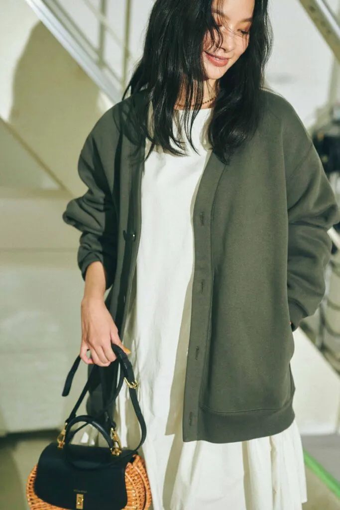 1. 「スウェットカーディガン」を使ったカジュアル過ぎないスウェットコーデ