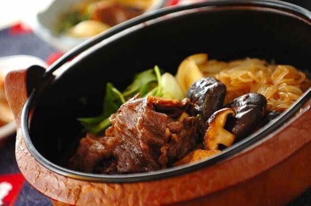 牛肉がメインのすき焼きは、手軽に作れるごちそうメニューですね。野菜もたっぷりいただけます。アルコールに引火しないように、大きめの鍋を使ってください。しらたきは長ければ食べやすい長さに切ってくださいね。