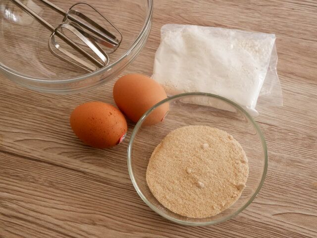 ホットケーキミックスを使ってスポンジケーキを作ります。ホットケーキミックスには薄力粉、ベーキングパウダーなどが予め含まれているため、細かい計量いらずでお手軽です。