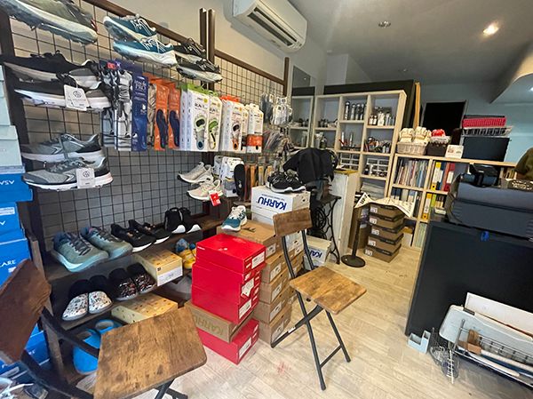 店内。足の状態に合わせた靴やインソールの制作もしてもらえます。フットケアやセミナー・ワークショップなどは湯の山にオープンしたサロンで継続されています